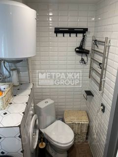 Совмещенный санузел вмещает в себя все что необходимо - бойлер, стиральную машину, раковину, унитаз и удобную душевую.