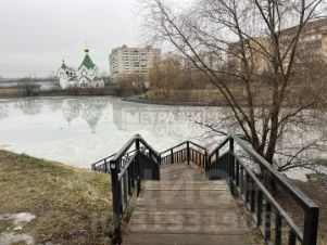Очень зелёный экологичный район с зелёными просторными аллеями для прогулок, с разметкой для самокатов, с благоустроенным озером с видом на церковь.