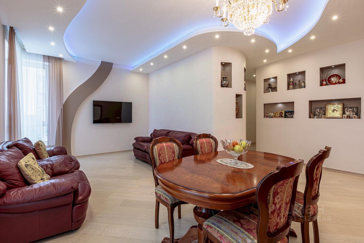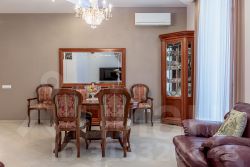 Неэффективных площадей в квартире нет, продуманная и рациональная планировка: гостиная, кухня, три изолированных спальни, два санузла с ванной и душевой, кладовка, два французских балкона. Ремонт и инженерные коммуникации выполнены из дорогих импортных материалов и оборудования. Квартира оснащена бытовой техникой MIELE, установлены кондиционеры, бойлер, теплые полы, видеодомофон.