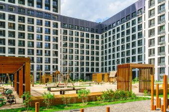 Концепция ЖК: огороженная охраняемая территория. На территории ЖК природный комплекс Яблоневый сад, комфортное зонирование и качественное благоустройство (множество прогулочных, спортивных и детских зон, тенистые беседки, площадка в экостиле, амфитеатр, шезлонги, арт-объекты и элементы для игр, павильон для хранения велосипедов). Школа, детский сад на 260 мест. 2-уровневый подземный паркинг на 1200 машиномест.