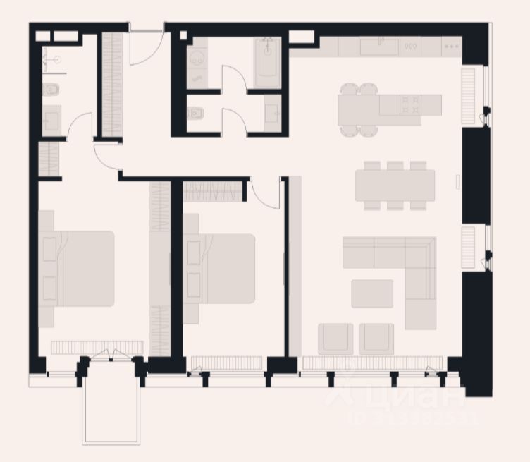 Трехкомнатная квартира с отделкой и уютным балконом в роскошном жилом комплексе Victory Park Residences. Просторная, с высокими потолками, ориентированная на юг квартира наполнена светом и воздухом. Из окон открывается вид на красивый закрытый двор с изысканным ландшафтным дизайном. Эргономичная и функциональная планировка предусматривает две спальни с собственными ванными комнатами и гардеробными, а также еще одну спальню, просторную гостиную, совмещенную с кухней-столовой, гардероб, гостевой санузел и постирочную.
