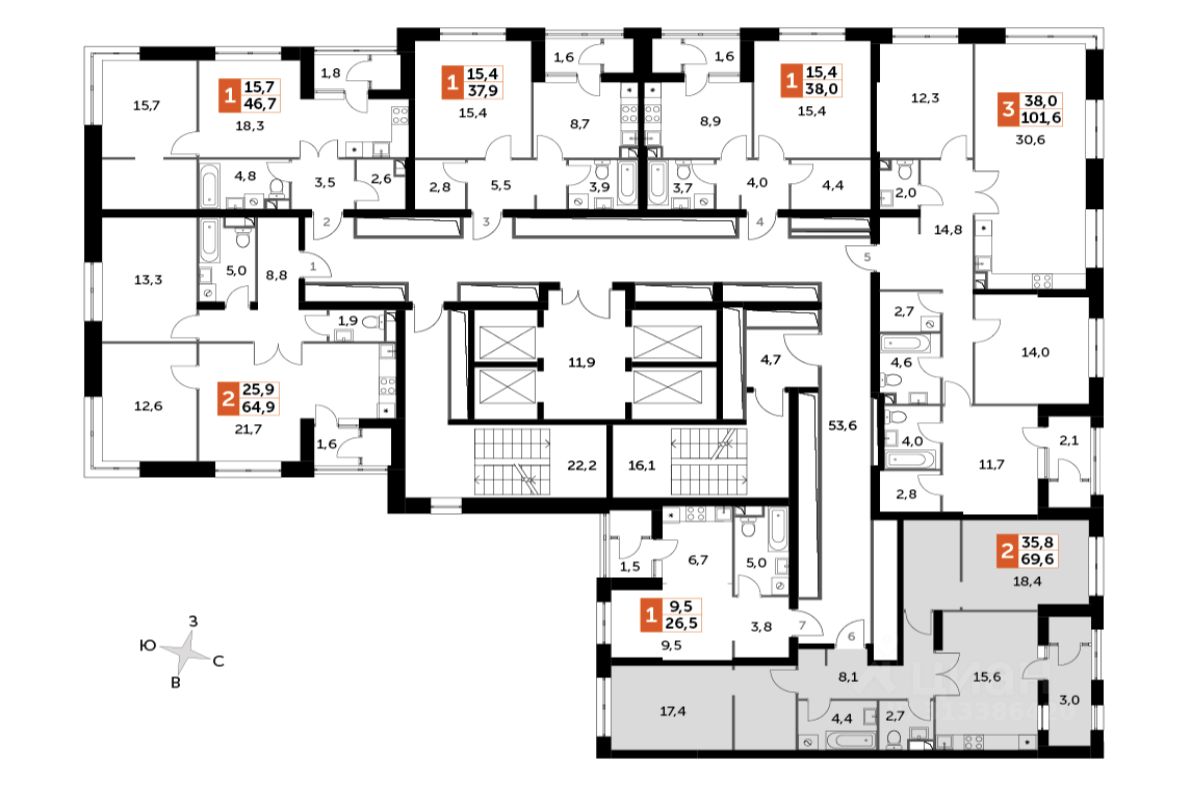 Жилой Комплекс Бизнес класса. 2-к квартира общей площадью 69.6 кв.м.