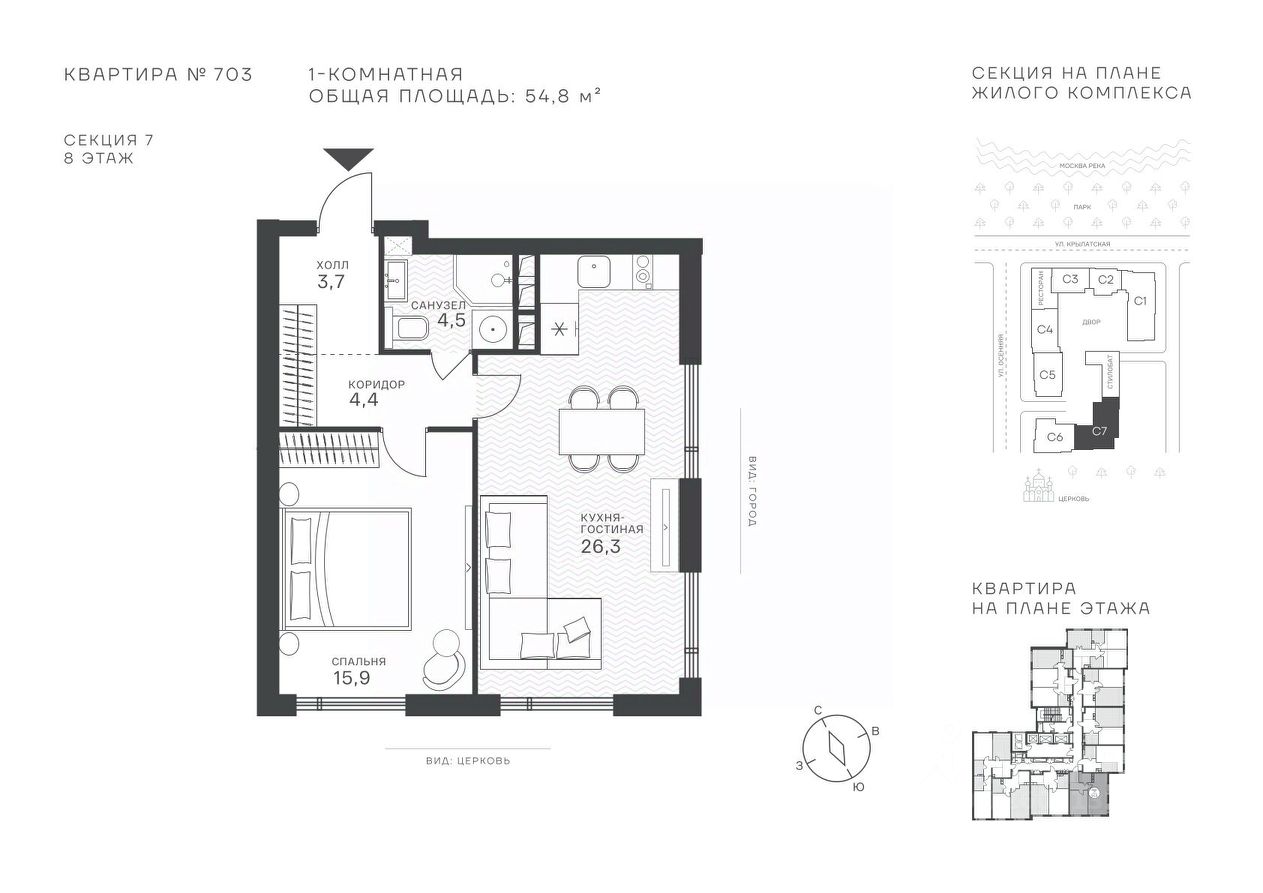 Общая площадь54,8 м²