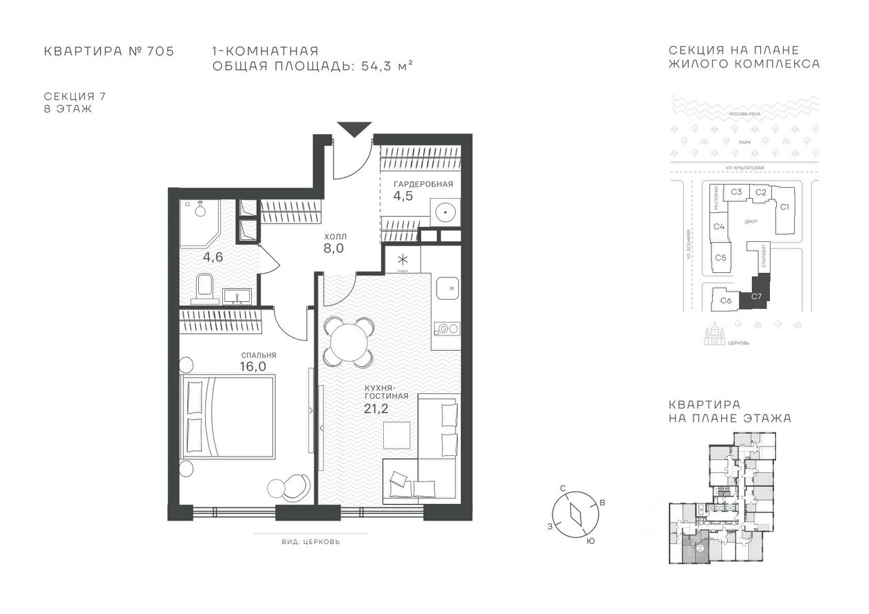 Общая площадь54,3 м²