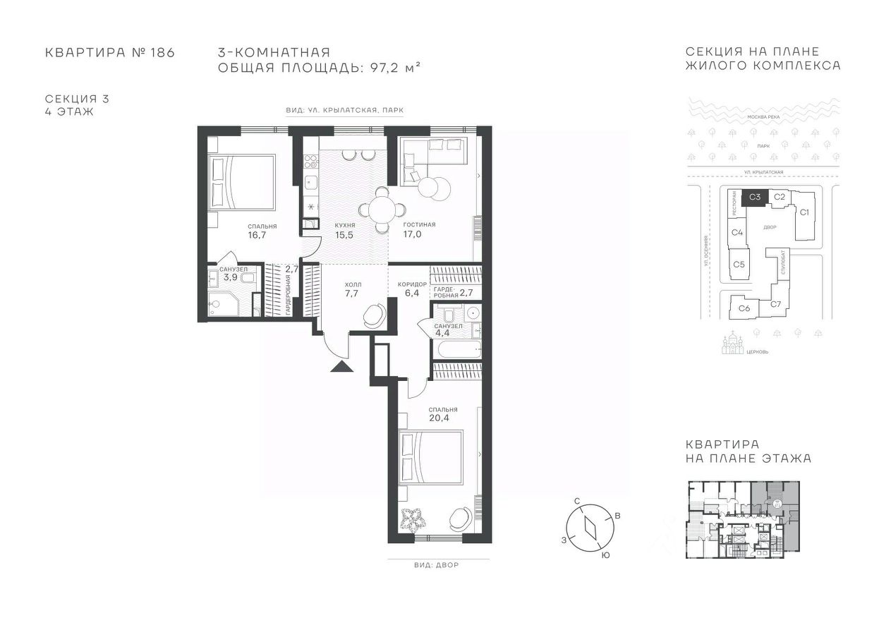 Успейте стать частью уникального проекта премиум-класса на западе Москвы! В продаже квартиры: 1-комнатные от 28,1 м²; 2-комнатные от 61,2 м²; 3-комнатные от 86,6 м²; 4-комнатные от 110,7 м². Первый взнос от 30%! Рассрочка на 2 года без переплат! Крылатское 33 это премиальный жилой комплекс от специализированного застройщика ООО "Сияние". Самый высокий небоскрёб в районе, достигающий отметки в 150 метров и малоэтажный клубный формат высотой от 42 метров на приватной территории площадью 1,4 га. Великолепные виды на излучину Москва-реки, Живописный мост и урбанистический облик города. Эксклюзивные форматы квартир с панорамным остеклением и патио-террасами. Двухуровневый паркинг на 271м/м, премиальные входные группы, ресторан высокой кухни, детский сад и эко-маркет на территории комплекса. Эксклюзивные преимущества: доступ к wellness-центру, коворкингу и клубной гостиной только для резидентов. Над проектом работали именитые российские архитектурные бюро: архитектор проекта бюро "Остоженка", планировочные решения от бюро Александры Федоровой. Расположение Пешком: 5-7 минут - до парка Звезд, Крылатского парка и набережной Москвы-реки; 15 минут - до метро Крылатское Арбатско-Покровской линии; 15 минут - до пристани Крылатская. На автомобиле: 10 минут - до Третьего транспортного кольца; 15 минут - до Садового кольца и Москва- Сити; 20-30 минут - до Аэропорта Внуково; 30-40 минут - до Аэропорта Шереметьево. В 300 метрах от комплекса - удобная транспортная развязка с проспектом Маршала Жукова, обеспечивающая легкий доступ к ключевым магистралям. Благоустройство: Просторная общественная гостиная; Коворкинг с кофе-баром, комфортные переговорные зоны с быстрым wi-fi, зарядными устройствами и библиотекой; Пространство friends lab для организации клубных мероприятий; Wellness-центр с фитнес-залом и массажными кабинетами; Ресторан высокой кухни; Частный детский сад; Детское кафе; Современный детский playhub; Спортивные площадки; Гипоаллергенный сад, безопасные водные пространства, декоративные пруды и сухие фонтаны; Высокоскоростные бесшумные лифты; Разделение зон для резидентов квартала и сервисного обслуживания. Окружение: - парки: Крылатские холмы, природно-исторический парк Москворецкий, Серебряный Бор; - учебные заведения: 5 образовательных комплексов, в которые входят 15 детских садов и 12 школьных корпусов. В удобной транспортной доступности гимназия им. Е. М. Примакова и международный лицей The International School of Moscow; - уникальные спортивные сооружения: гребной канал "Крылатское", легендарный велотрек "Крылатское", "Лата Трэк" для горнолыжников и сноубордистов, ледовый дворец "Крылатское"; - единственный в Москве парк развлечений под открытым небом, включающий более 70 вариантов досуга для любого возраста и времени года. Срок сдачи проекта: 2 квартал 2027 года. Финансирование и эскроу-счет обеспечены банком МКБ.