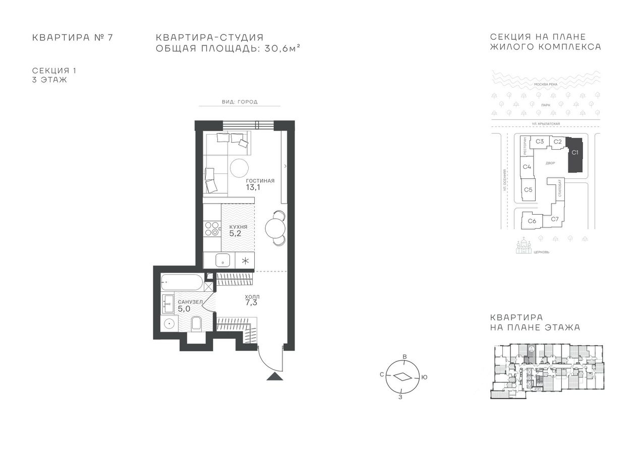 Успейте стать частью уникального проекта премиум-класса на западе Москвы! В продаже квартиры: 1-комнатные от 28,1 м²; 2-комнатные от 61,2 м²; 3-комнатные от 86,6 м²; 4-комнатные от 110,7 м². Первый взнос от 30%! Рассрочка на 2 года без переплат! Крылатское 33 это премиальный жилой комплекс от специализированного застройщика ООО "Сияние". Самый высокий небоскрёб в районе, достигающий отметки в 150 метров и малоэтажный клубный формат высотой от 42 метров на приватной территории площадью 1,4 га. Великолепные виды на излучину Москва-реки, Живописный мост и урбанистический облик города. Эксклюзивные форматы квартир с панорамным остеклением и патио-террасами. Двухуровневый паркинг на 271м/м, премиальные входные группы, ресторан высокой кухни, детский сад и эко-маркет на территории комплекса. Эксклюзивные преимущества: доступ к wellness-центру, коворкингу и клубной гостиной только для резидентов. Над проектом работали именитые российские архитектурные бюро: архитектор проекта бюро "Остоженка", планировочные решения от бюро Александры Федоровой. Расположение Пешком: 5-7 минут - до парка Звезд, Крылатского парка и набережной Москвы-реки; 15 минут - до метро Крылатское Арбатско-Покровской линии; 15 минут - до пристани Крылатская. На автомобиле: 10 минут - до Третьего транспортного кольца; 15 минут - до Садового кольца и Москва- Сити; 20-30 минут - до Аэропорта Внуково; 30-40 минут - до Аэропорта Шереметьево. В 300 метрах от комплекса - удобная транспортная развязка с проспектом Маршала Жукова, обеспечивающая легкий доступ к ключевым магистралям. Благоустройство: Просторная общественная гостиная; Коворкинг с кофе-баром, комфортные переговорные зоны с быстрым wi-fi, зарядными устройствами и библиотекой; Пространство friends lab для организации клубных мероприятий; Wellness-центр с фитнес-залом и массажными кабинетами; Ресторан высокой кухни; Частный детский сад; Детское кафе; Современный детский playhub; Спортивные площадки; Гипоаллергенный сад, безопасные водные пространства, декоративные пруды и сухие фонтаны; Высокоскоростные бесшумные лифты; Разделение зон для резидентов квартала и сервисного обслуживания. Окружение: - парки: Крылатские холмы, природно-исторический парк Москворецкий, Серебряный Бор; - учебные заведения: 5 образовательных комплексов, в которые входят 15 детских садов и 12 школьных корпусов. В удобной транспортной доступности гимназия им. Е. М. Примакова и международный лицей The International School of Moscow; - уникальные спортивные сооружения: гребной канал "Крылатское", легендарный велотрек "Крылатское", "Лата Трэк" для горнолыжников и сноубордистов, ледовый дворец "Крылатское"; - единственный в Москве парк развлечений под открытым небом, включающий более 70 вариантов досуга для любого возраста и времени года. Срок сдачи проекта: 2 квартал 2027 года. Финансирование и эскроу-счет обеспечены банком МКБ.