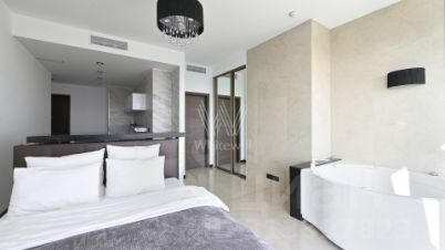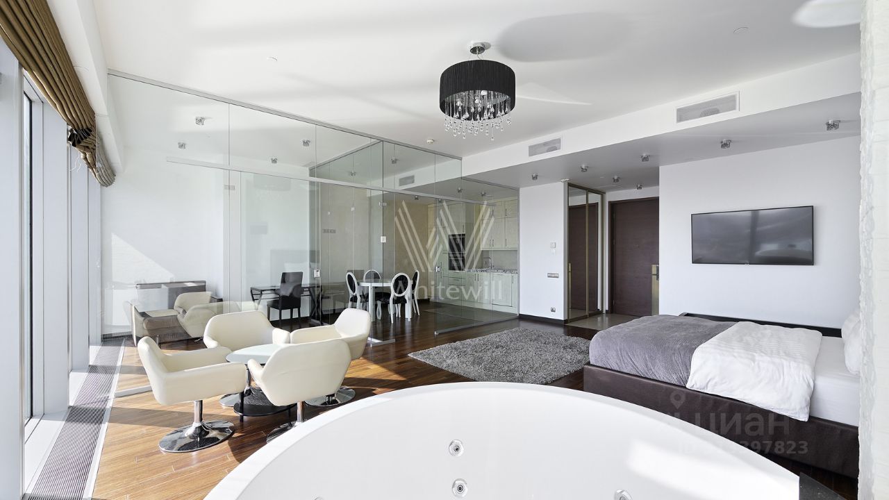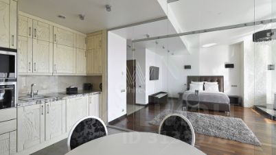 Выполнен дизайнерский ремонт в современном стиле с использованием премиальных материалов, пространство зонировано стеклянными перегородками. Апартаменты укомплектованы мебелью и бытовой техникой от мировых производителей.