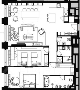 - Закругленные панорамные окна — уникальная особенность, доступная только на 28 этаже;
