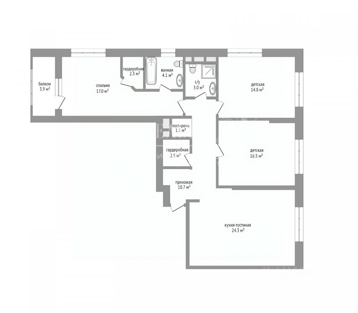 Функциональная планировка: Мастер спальня 17м2 с лоджией 3,9м2 просторной гардеробной и с/узлом с окном, Гостевой с/у с душевой, 2е изолированные спальни 14,8м2 и 16,5м2, Просторная кухня-гостиная 24,3м2, Постирочная, гардеробная.