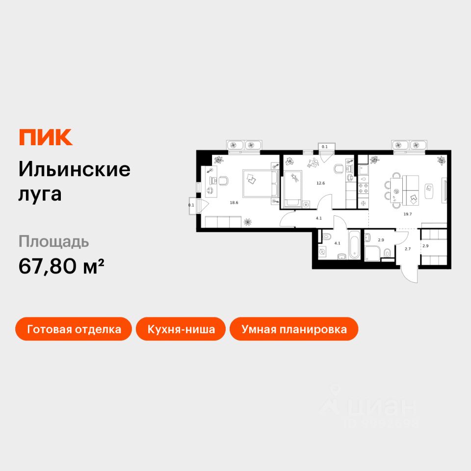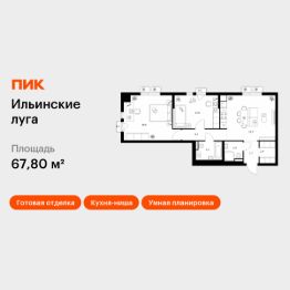 Продаётся 2-комн. квартира площадью 67,8 кв.м на 9 этаже 9 этажного дома (Корпус 3.5, Секция 5) проекта ПИК Ильинские луга. Светлый просторный подъезд на уровне земли, функциональная планировка, большие окна, c отделкой.