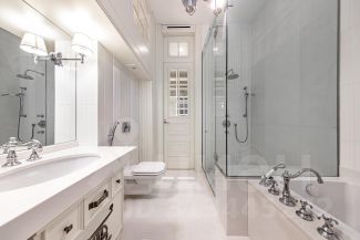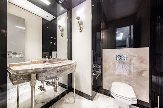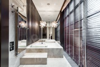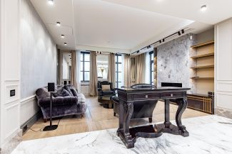 Предлагается к продаже роскошная видовая квартира. Дизайнерский ремонт в современном стиле с элементами ар-деко. Четырехкомнатная квартира площадью 216,5 кв м, расположена на первом этаже премиального жилого комплекса Park Residence в Якиманском районе. Продуманная планировка позволила разделить пространство на две функциональные зоны: общую зону отдыха и приватную. В первой части находится холл с вместительной гардеробной, рабочий кабинет, гостевой санузел, постирочная и просторная гостиная, совмещенная с кухней, барной зоной и столовой. Во второй - гостевая комната, детская спальня с ванной и гардеробной и мастер-спальня с большой гардеробной, ванной и душевой. В квартире предусмотрена система умный дом.