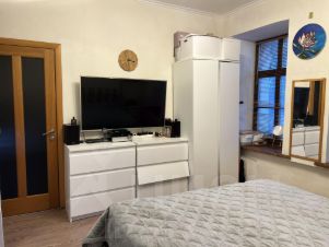 Кухня и большая комната выходят на улицу Русаковская; в ванной 2 окна, в туалете 1 окно, они и спальня выходят во двор.