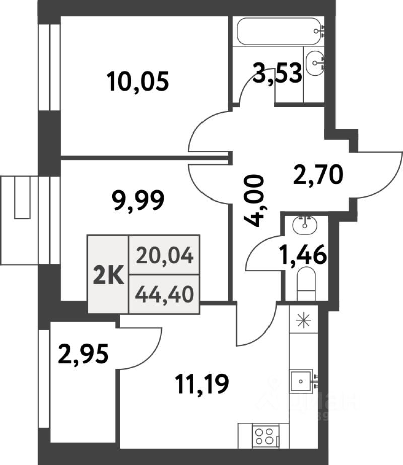 Продаётся 2-комнатная квартира в строящемся доме (Корпус 2), срок сдачи: IV-кв. 2026, общей площадью 44.4 кв.м., на 7 этаже. Многоквартирный жилой комплекс по адресу: г. Москва, поселение Сосенское, поселок Газопровод, улица Лесные Поляны 5-я, земельный участок 20