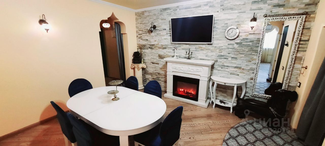 В гостиной комнате стена, где установлен камин, отделана натуральным сланцем.