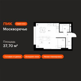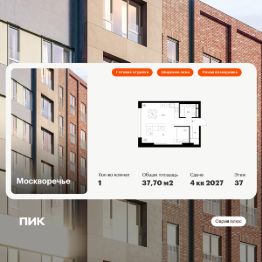 Продаётся 1-комн. квартира площадью 37,7 кв.м на 37 этаже 37 этажного дома (Корпус 1.1, Секция 1) проекта ПИК Москворечье. Светлый просторный подъезд на уровне земли, функциональная планировка, большие окна, c отделкой.