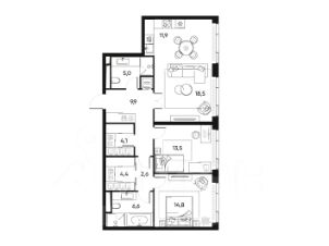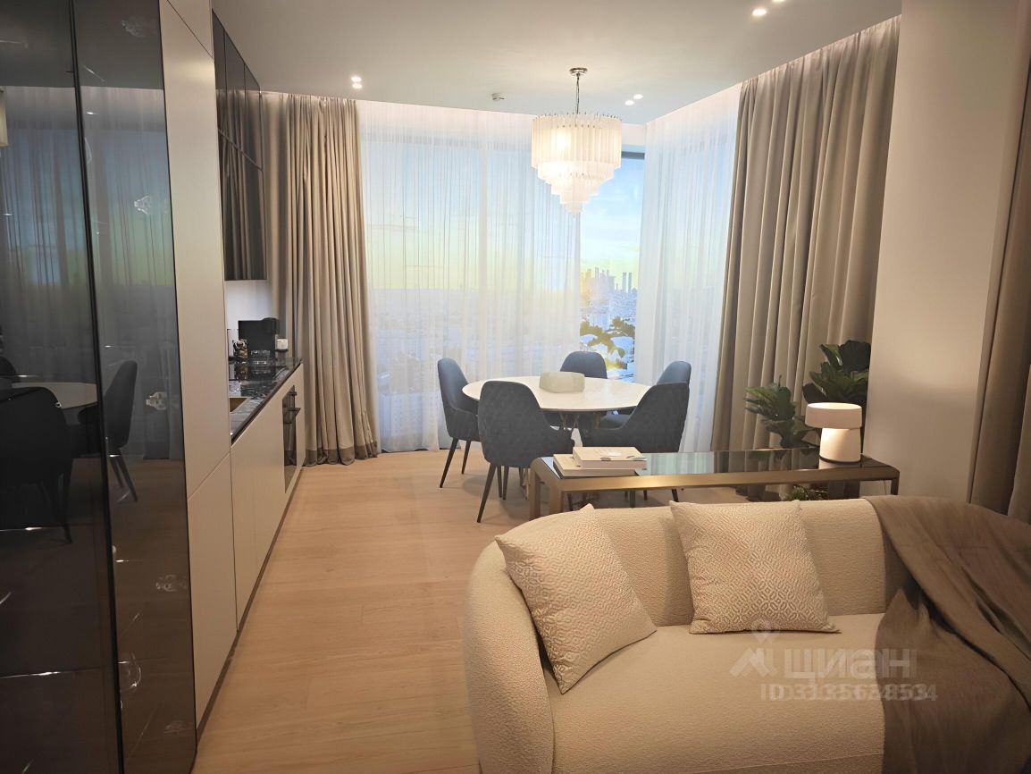 Общая площадь квартиры составляет 91,9 квадратных метра, она расположена на шестом этаже 9-этажного монолитного дома, всего в 10 минутах ходьбы от станции метро Савёловская.