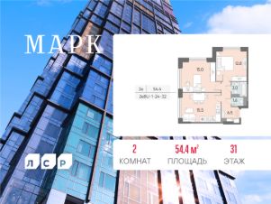 В доме премиум-класса МАРК продаётся 2-комнатная квартира общей площадью 54.4 кв. метров на 31 этаже. Дом располагается в престижном Даниловском районе Москвы. В ближайшем будущем на станции МЦК "ЗИЛ" появится пересадочный узел, открывающий доступ к двум новым линиям метро — "Бирюлевской" и "Троицкой". А также завершится строительство пешеходного моста, который проложит пешеходный маршрут к станции метро "Нагатинская".