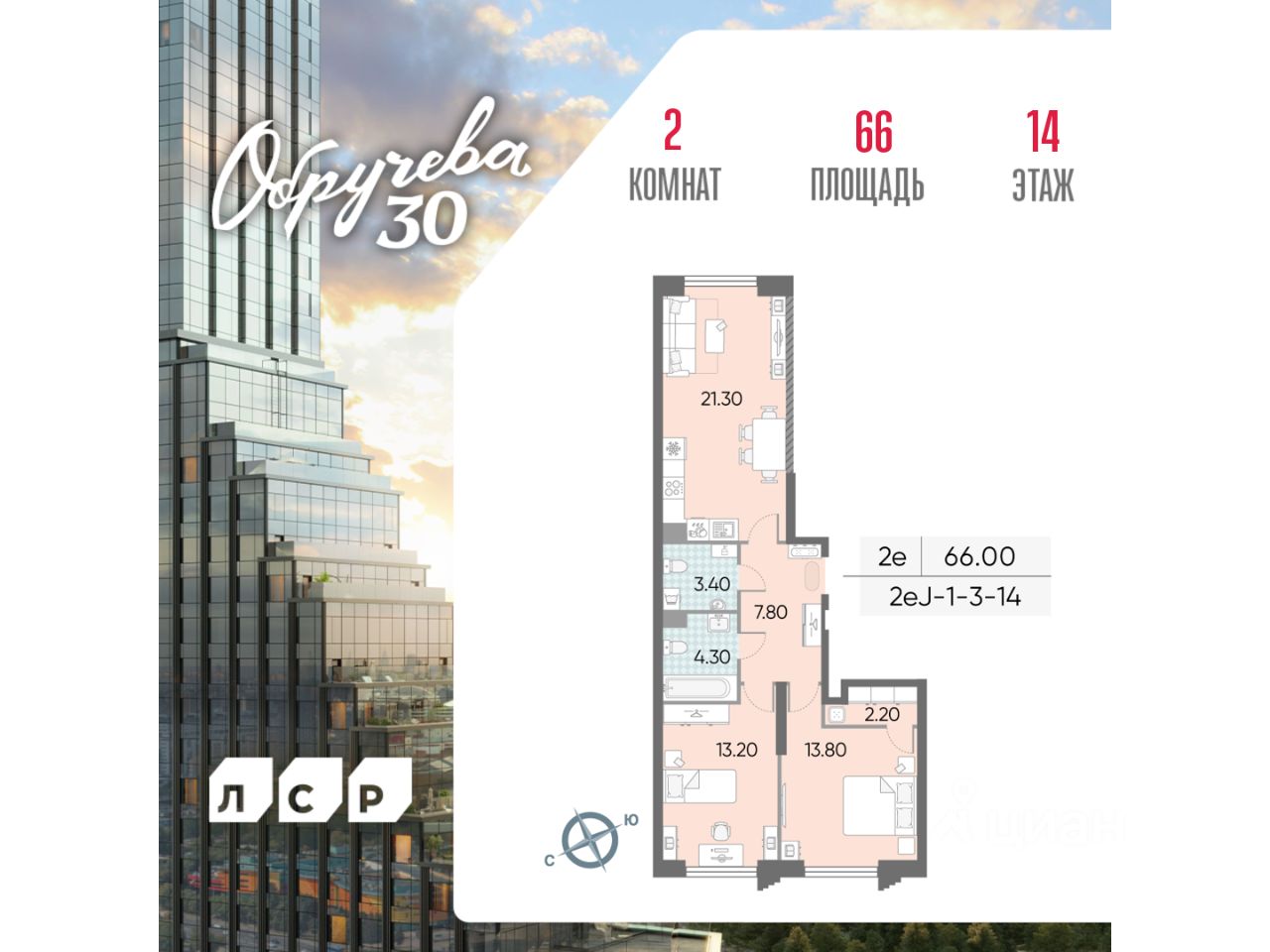 Продается 2-комнатная квартира общей площадью 66 кв. метров на 14 этаже дома бизнес-класса "Обручева 30". Дом располагается в 5 минутах ходьбы до станции метро "Калужская" и 10 минутах до станции метро "Воронцовская". Для автомобилистов удобный и быстрый выезд на улицы Обручева и Профсоюзную.