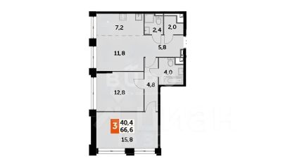 Общая площадь квартиры составляет 66,6 м². Квартира расположена на 37-м этаже нового 43-этажного монолитного дома, в районе "Хорошево-Мневники". В 10 минутах ходьбы находится ст. метро "Хорошево".