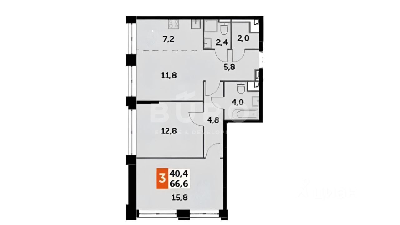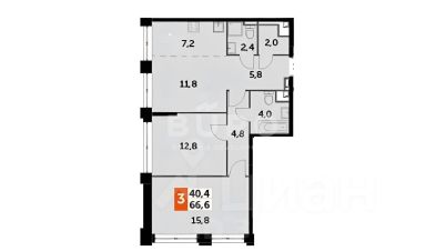 Общая площадь квартиры составляет 66,6 м². Квартира расположена на 37-м этаже нового 43-этажного монолитного дома, в районе "Хорошево-Мневники". В 10 минутах ходьбы находится ст. метро "Хорошево".