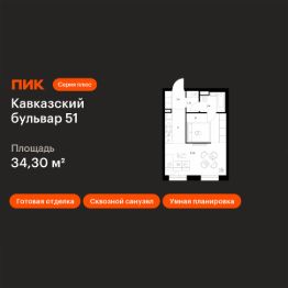 Продаётся 1-комн. квартира площадью 34,3 кв.м на 12 этаже 32 этажного дома (Корпус 3.6, Секция 3) проекта ПИК Кавказский бульвар 51. Светлый просторный подъезд на уровне земли, функциональная планировка, большие окна, c отделкой.