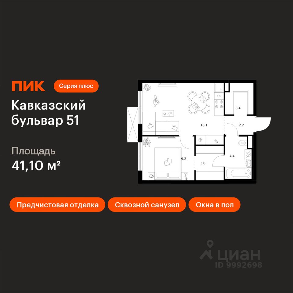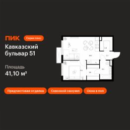 Продаётся 1-комн. квартира площадью 41,1 кв.м на 24 этаже 24 этажного дома (Корпус 3.5, Секция 2) проекта ПИК Кавказский бульвар 51. Светлый просторный подъезд на уровне земли, функциональная планировка, большие окна, предчистовая отделка.