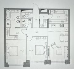 2-комн. квартира, 89,7 м²