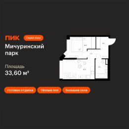 Продаётся 1-комн. квартира площадью 33,6 кв.м на 11 этаже 31 этажного дома (Корпус 4.3, Секция 2) проекта ПИК Мичуринский парк. Светлый просторный подъезд на уровне земли, функциональная планировка, большие окна, c отделкой.