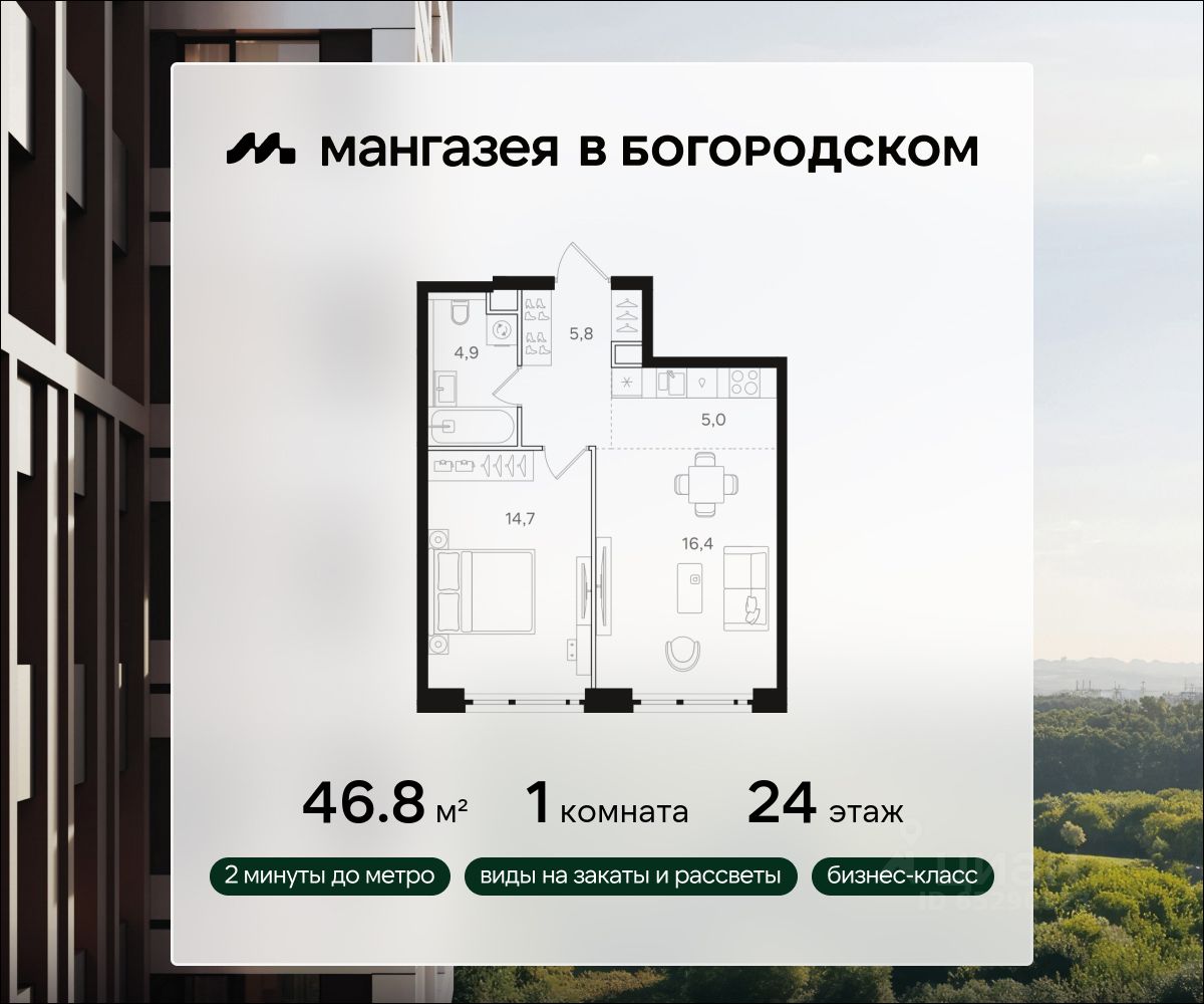 Предлагается квартира площадью 46.80 кв. м в новом современном квартале на востоке Москвы, прямо у станций метро и МЦК "Бульвар Рокоссовского". Квартира располагается в корпусе 5 на 24 этаже комплекса бизнес-класса "НАЗАРЕ'".