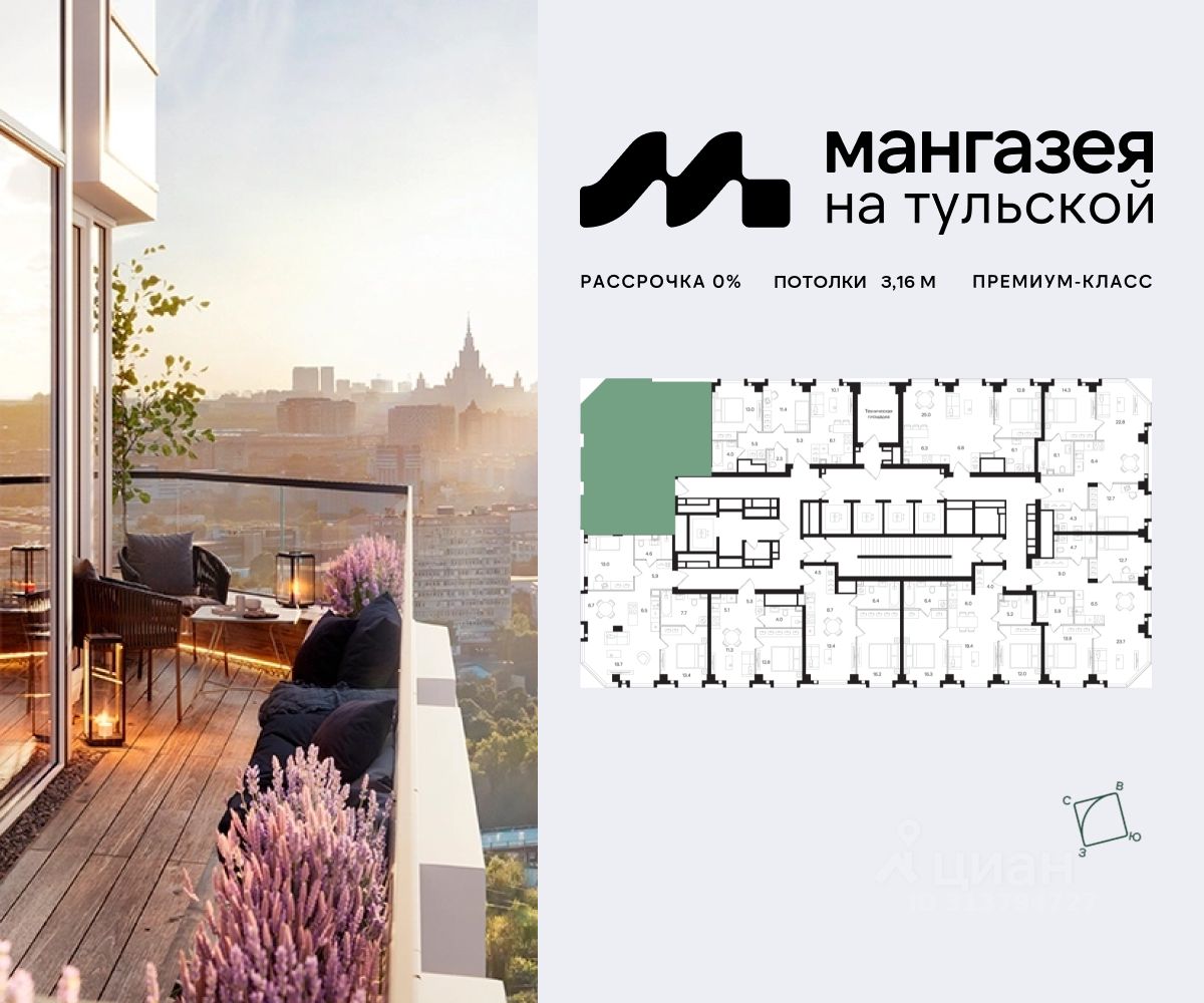 Мангазея на Тульской - премиальные жилые небоскребы в Даниловском районе, в 10 минутах от Садового кольца. Проект состоит из 42-этажной Бронзовой башни и 41-этажной Серебряной. Рядом - набережная Москвы-реки, Даниловский рынок, музеи и галереи, престижные школы и вузы.
