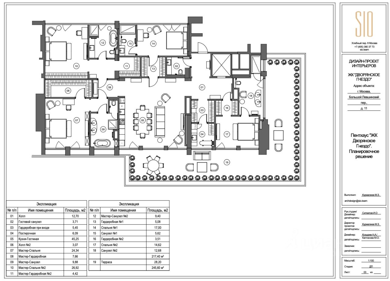 Предлагается светлый пентхаус с террасой без отделки в клубном доме "Дворянское гнездо". Общая площадь 245,6 кв.м.