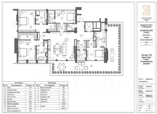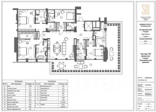 Планировкой предусмотрено: кухня-столовая, гостиная, 3 спальни, гардеробные, 4 санузла, кладовая. Высота потолков 3,3 м. Большие панорамные окна, которые наполняют квартиру светом. Просторная терраса.