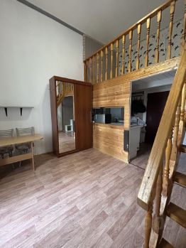 В доступе имеются 4 туалета и душ. Соседи адекватные, приличные. Высокие потолки - 3,8 метра. Деревянный второй этаж. Ремонт косметический.