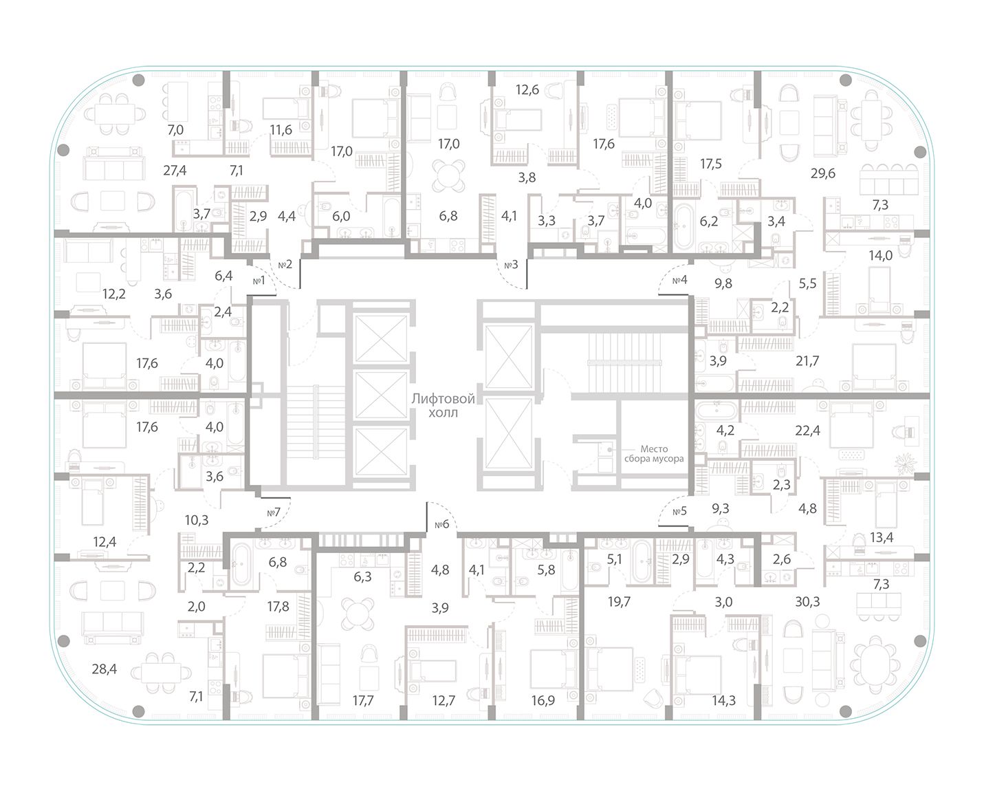 В закрытом внутреннем дворе уникальная по насыщенности клубная инфраструктура - 5 Towers Club только для жителей: