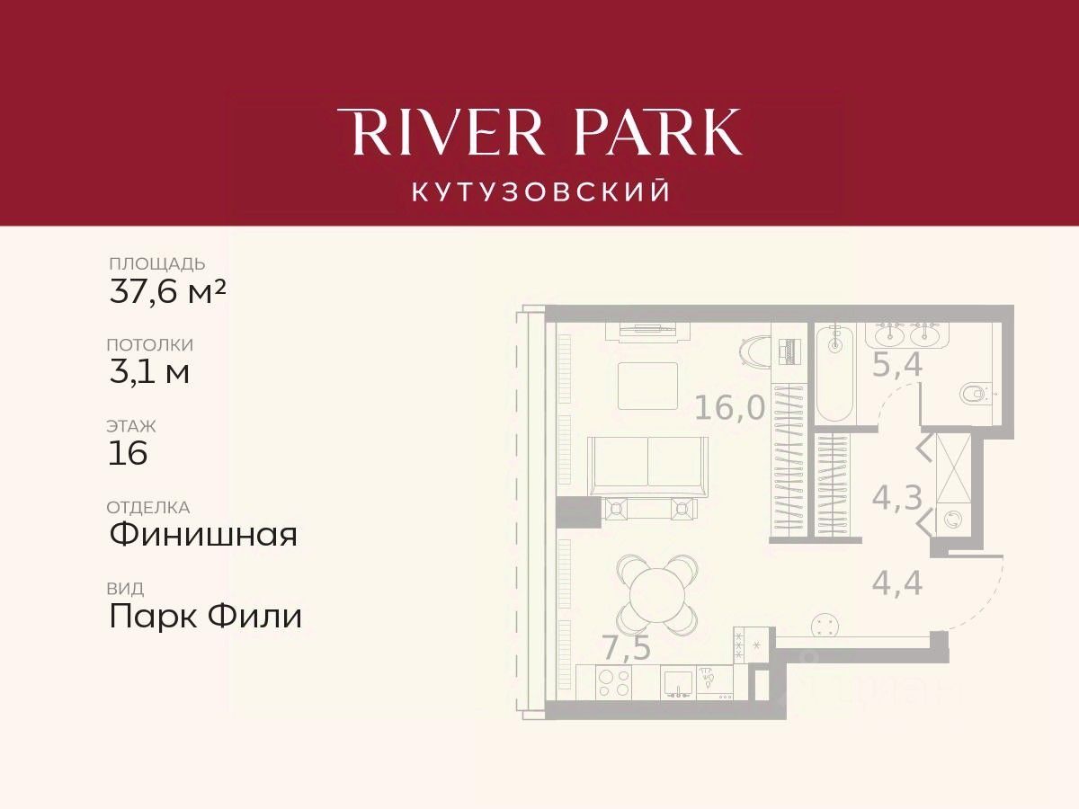 Продается студия площадью 37.6 кв.м. на 16-м этаже в жилом комплексе премиум-класса River Park Кутузовский в Башне Topaz Tower