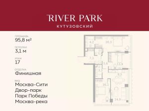 Продается 3-к квартира площадью 95.8 кв.м. на 17-м этаже в жилом комплексе премиум-класса River Park Кутузовский в Башне Topaz Tower