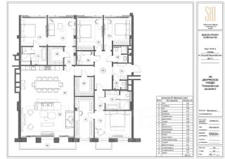 В квартире можно спланировать: кухню-столовую, гостиную, 4 спальни, гардеробные, 4 санузла, кладовую. Высота потолков 3,3 м. Есть два балкона. Большие окна, которые наполняют квартиру светом.
