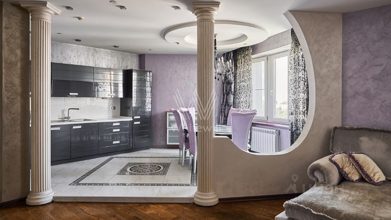 Продуманы различные сценарии освещения — люстры, настенные светильники и споты. Функциональная планировка включает просторную кухню-гостиную с обеденной зоной, мастер-спальню с гардеробной и санузлом, две спальни, гостевой санузел, две гардеробные, постирочную и холл. Окна ориентированы на две стороны, открываются виды на город.