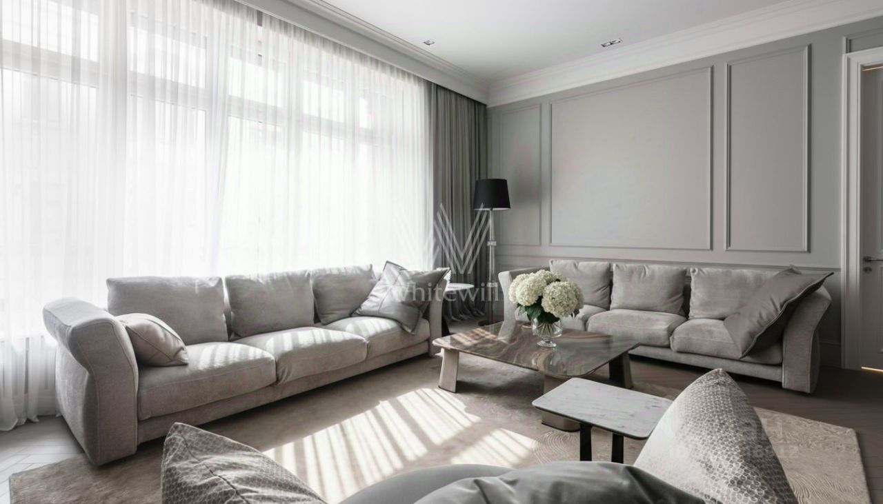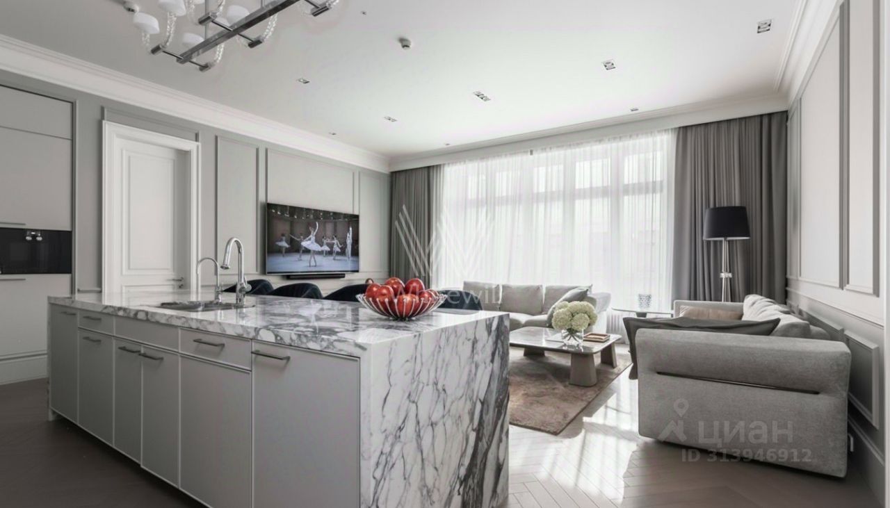 Просторная квартира с двумя спальнями площадью 137 м² в клубном доме делюкс-класса "Малая Бронная 15" на втором этаже.