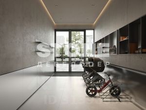 Во всех входных группах предусмотрены помещения для временного хранения СИМ, лапомойки, гостевые санузлы, а также комнаты матери и ребенка. На каждом этаже появятся колясочные для дополнительного удобства семей с маленькими детьми.