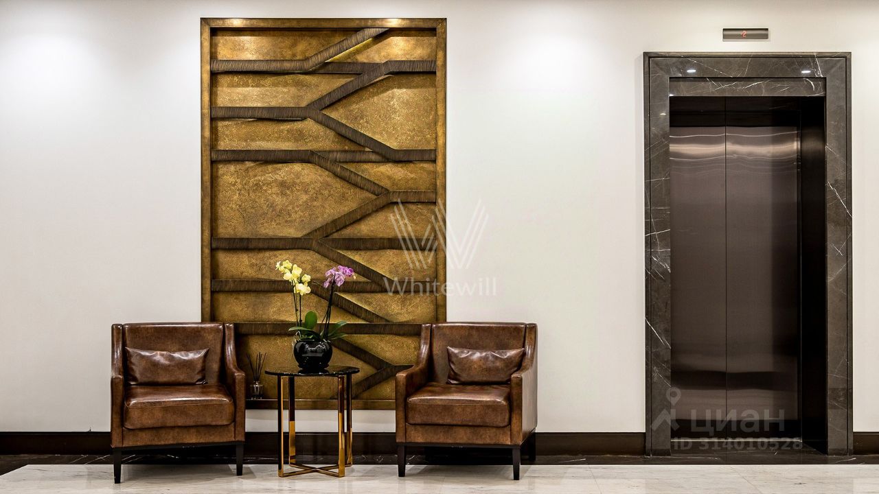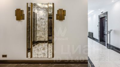 Возможная планировка: гостиная, кухня-столовая, четыре спальни, кабинет, шесть ванных комнат, три гардеробные, постирочная. Благодаря восемнадцати панорамным окнам пространство наполнено естественным светом, открываются виды на три стороны — на город и во внутренний двор.