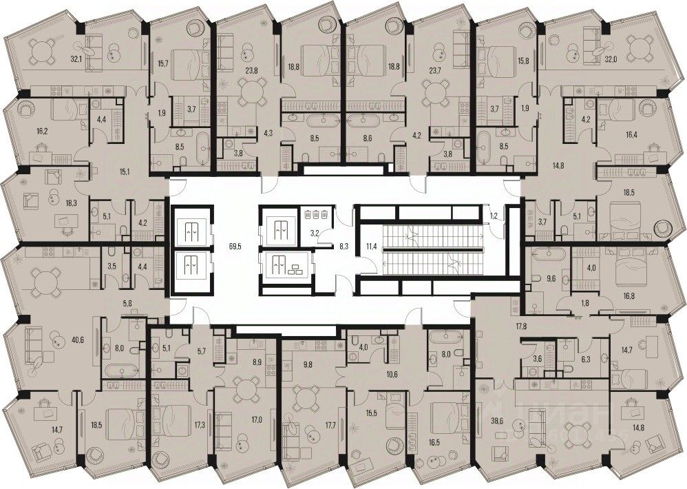 4-к квартира квартира в премиальном комплексе ХАЙ ЛАЙФ на 16-м этаже в 32 этажном здании. Общая площадь 129.3 кв. м.