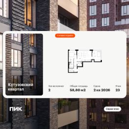Продаётся 2-комн. квартира площадью 58,8 кв.м на 23 этаже 30 этажного дома (Корпус 3, Секция 2) проекта ПИК Кутузовский квартал. Светлый просторный подъезд на уровне земли, функциональная планировка, большие окна, c отделкой.