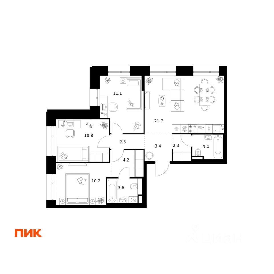 В окружающем районе есть всё для комфортной жизни: детские сады, школы, торговые центры, парки для прогулок, фитнес-клубы и даже бассейн. Артикул 1004595 (Застройщик ООО СЗ "Перспективные решения")