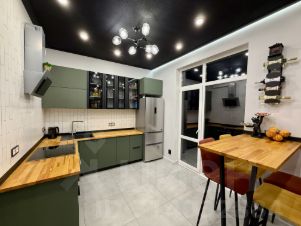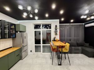 Квартира выполнена в современном стиле с использованием качественных материалов. Евроремонт гарантирует долговечность и эстетическую привлекательность.