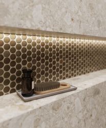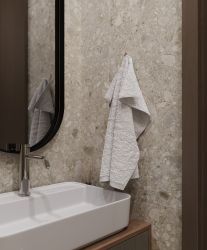 — На полу и стенах керамогранит Grespania Capitolio Vein