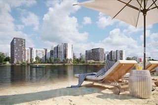 Вид на набережную, прогулочные и пляжные зоны Алешкинского пруда, а также на ухоженный внутренний двор с системой видеонаблюдения.