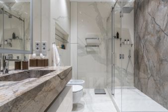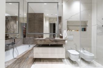 В отделке апартаментов использованы только современные, высококачественные и экологичные материалы. Апартаменты укомплектованы всей необходимой мебелью(изготовленной под заказ) и техникой ведущих производителей для комфортного проживания(много пространства для хранения вещей).