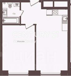 Планировка включает в себя: просторную кухню-гостиную, уютную спальню с большой кроватью и сан узел. В спальне большой встроенный шкаф для вещей, в гостиной напротив дивана установлен электрокамин, а кухонная зона полностью укомплектована встроенной бытовой техникой Cuppersberg и сантехникой от Velleroy&Boch и Kaiser.