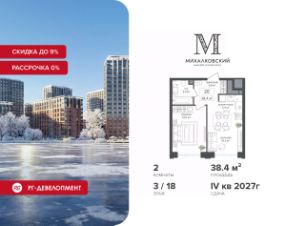 Продаётся 2-к квартира 38,4 кв.м. в ЖК "Михалковский" на 3-м этаже 18 этажного дома.